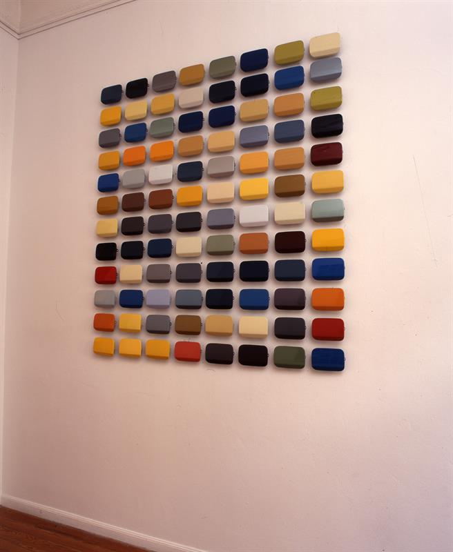 Installation Painted gas tank lids -Petrarch 188,9 x 154,1 cm -Laura 174,1 x 154,1 cm Donated by Dakis Joannou, 2018 Inv. No. 1203/18