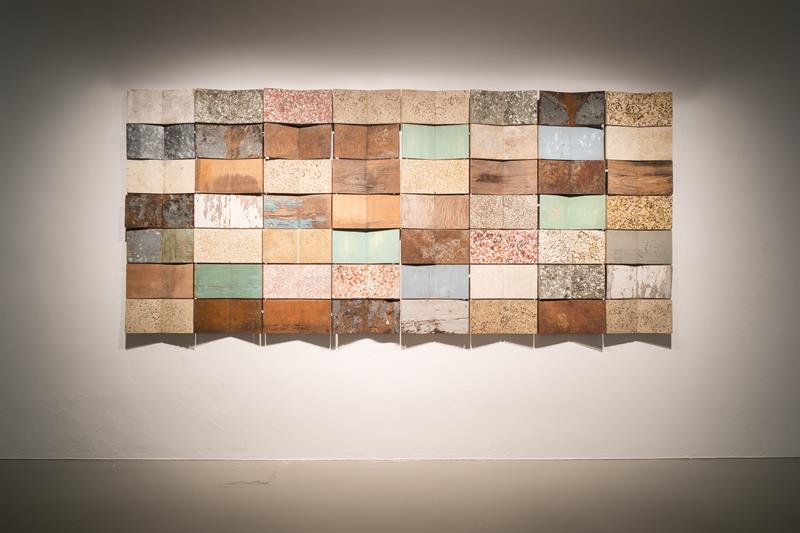Σινική μελάνη πάνω σε ξύλο, μέταλλο και μωσαϊκές πλάκες 140 x 320 εκ. Δωρεά της καλλιτέχνιδας 2014 Αρ. εισ.1012/14
