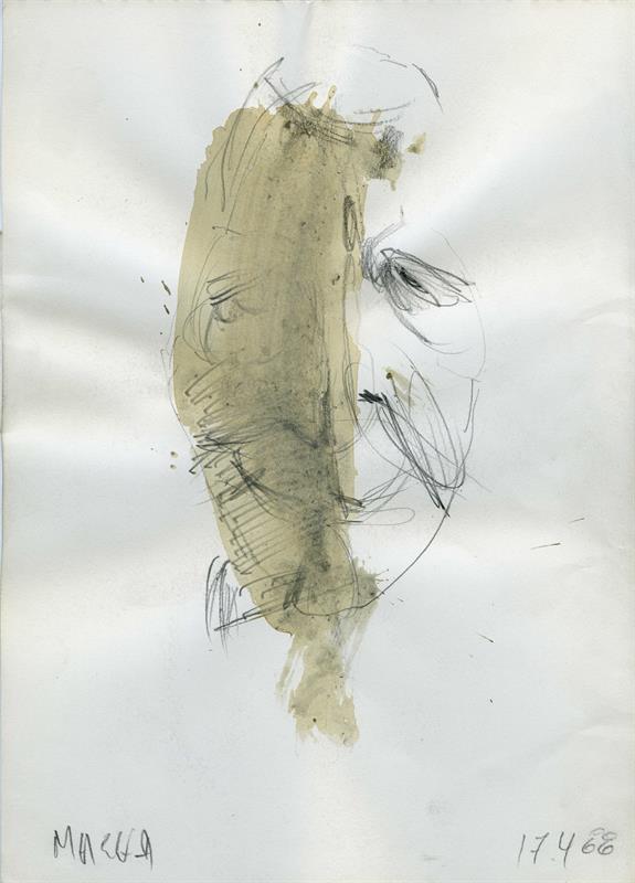 Pencil, coffee on paper