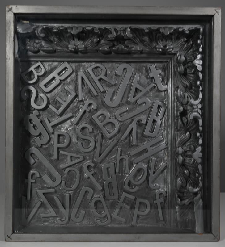 Colored wood, plastic, plaster, glass