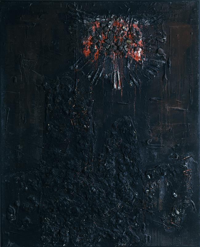 Τσιμέντο, κάρβουνα, ακρυλικό σε λινάτσα