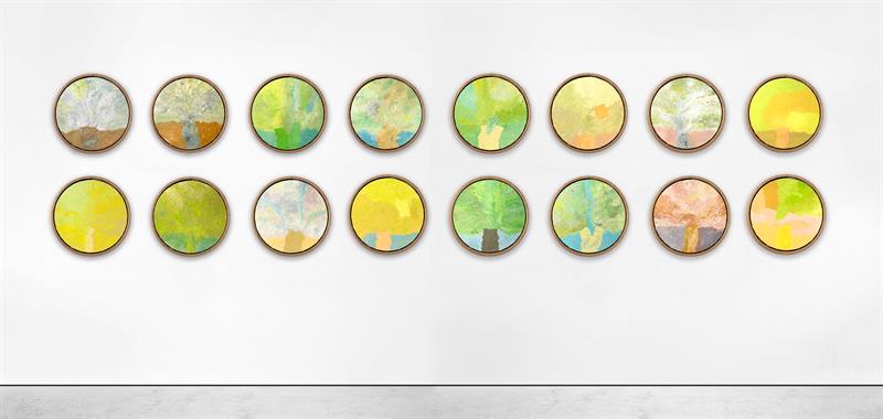 Το έργο Olivéa – Hommage à la Déesse de l’Olivier (Ολίβια – Φόρος τιμής στη θεά της ελιάς, 2018) της Etel Adnan αποτελείται από δεκαέξι στρογγυλούς καμβάδες που απεικονίζουν ελαιόδεντρα. Ο αριθμός τους αντιστοιχεί στον αριθμό των υπεραιωνόβιων ελαιόδεντρων στο χωριό Bchaaleh του Νοτίου Λιβάνου, τα οποία, σύμφωνα με την τοπική παράδοση, υπάρχουν από την εποχή του βιβλικού κατακλυσμού του Νώε. Με το έργο αυτό η Adnan αποδίδει φόρο τιμής στο ελαιόδεντρο, αναγνωρίζοντας την κεντρική σημασία του για τον μεσογειακό και, εν γένει, τον παγκόσμιο πολιτισμό. Όπως αναφέρει η ίδια: «Αν θέλουμε να σώσουμε τον πλανήτη μας, τη Γη, θα πρέπει να ξεκινήσουμε με αυτό το ευεργετικό δέντρο με τη μαγική ομορφιά».